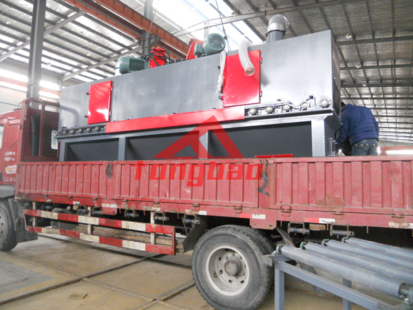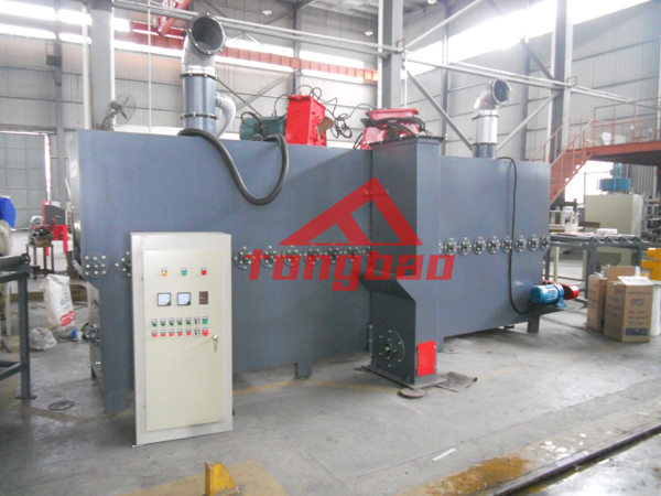杭州某石材廠家拋丸生產(chǎn)線裝車(chē)發(fā)貨,該拋丸生產(chǎn)線采用輥道通過(guò)式輸送,內(nèi)部?jī)膳_(tái)拋丸機(jī)同時(shí)拋射,覆蓋面積大,拋射均勻,效率高。