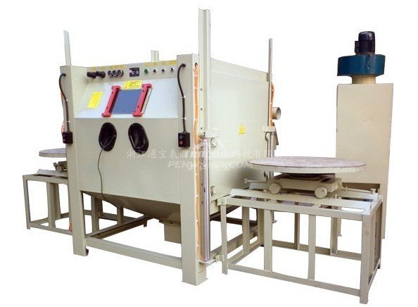 通寶系列轉(zhuǎn)臺(tái)式噴砂機(jī)分為推車轉(zhuǎn)臺(tái)式噴砂機(jī),新型氣動(dòng)門轉(zhuǎn)臺(tái)式噴砂機(jī)等多類型等多種噴砂設(shè)備。推車轉(zhuǎn)臺(tái)式噴砂機(jī)適用于較重工件的噴砂,各型模具、樹頭、雕塑、鑄件、馬達(dá)等。